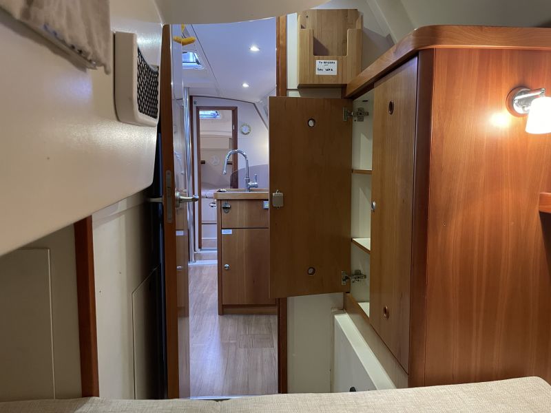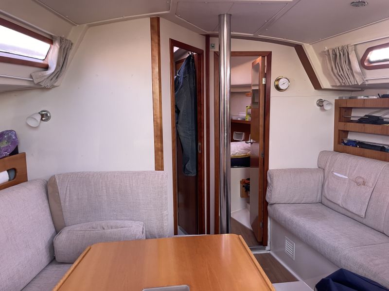 Son aménagement comprend trois cabines et un carré offrant une habitabilité généreuse pour les croisières en famille ou les week-ends entre amis.